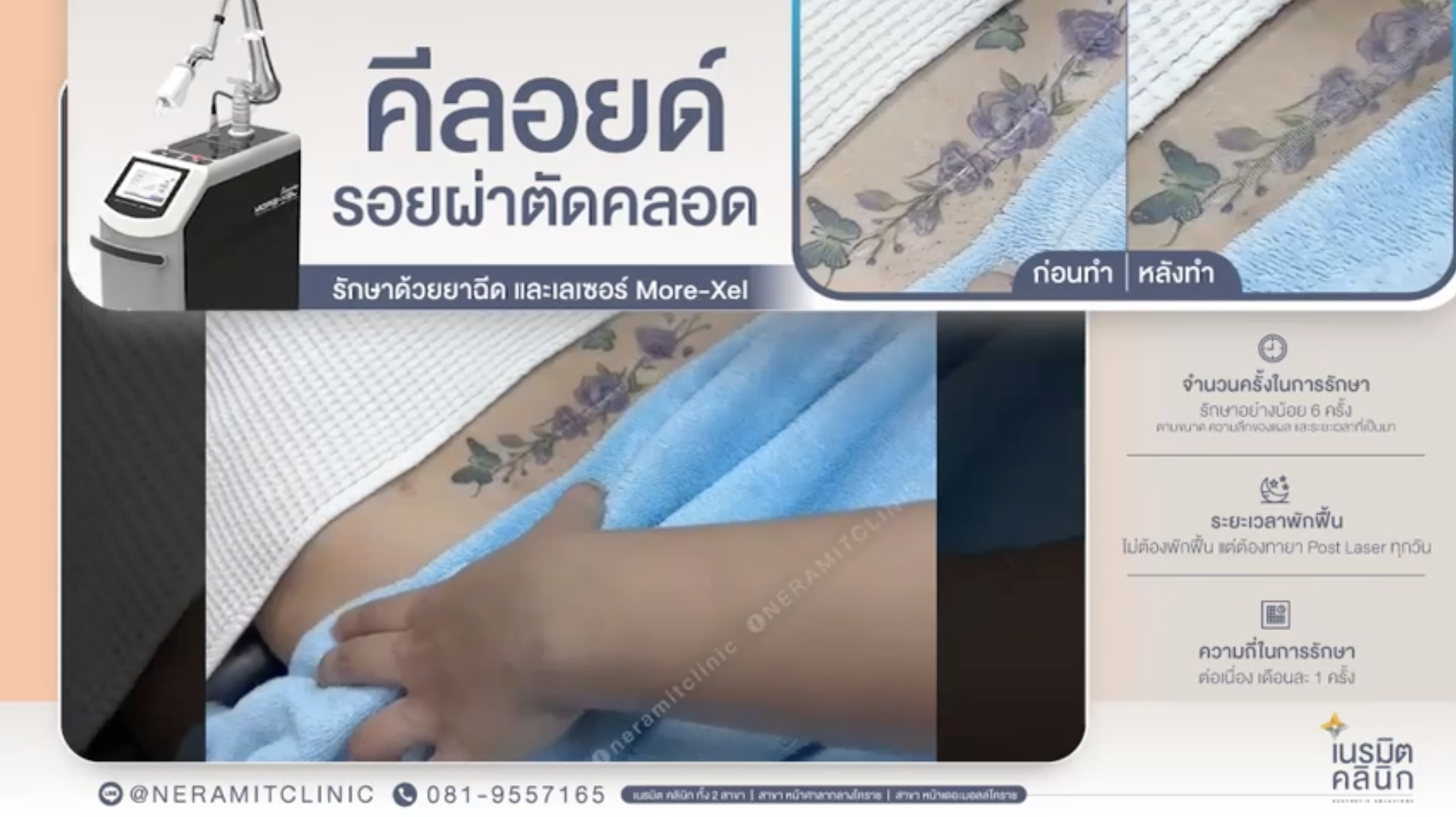 แผลผ่าคลอด กลายเป็นคีลอยด์ รักษาด้วย Morexel Laser ฟื้นฟูผิวเรียบเนียนอย่างปลอดภัย หลังการคลอดบุตรด้วยวิธีผ่าตัด สิ่งที่คุณแม่หลายคนกังวลไม่น้อยก็คือ แผลผ่าคลอด ที่อาจกลายเป็น แผลนูน หรือคีลอยด์ (Keloid) ทำให้รู้สึกไม่มั่นใจเมื่อใส่เสื้อผ้าโชว์หน้าท้อง หรือรู้สึกคัน ระคายเคืองบริเวณแผล แม้จะผ่านไปหลายเดือนแล้วแผลก็ยังคงแดง นูน และไม่เรียบเนียน ข่าวดีคือ! ปัจจุบันมีเทคโนโลยีเลเซอร์ที่ช่วยลดเลือนแผลเป็นคีลอยด์จากการผ่าคลอดได้อย่างมีประสิทธิภาพ และหนึ่งในเลเซอร์ที่ได้รับความนิยมสูงคือ Morexel Laser คีลอยด์จากแผลผ่าคลอด เกิดขึ้นได้อย่างไร? คีลอยด์คือแผลเป็นชนิดหนึ่งที่เกิดจากการสร้างคอลลาเจนเกินความจำเป็นของร่างกายหลังการบาดเจ็บ เช่น การผ่าตัดคลอด ทำให้เกิดแผลนูน แดง หรือคล้ำ บางรายอาจมีอาการคันหรือเจ็บร่วมด้วย โดยคีลอยด์มีแนวโน้มเกิดมากขึ้นในคนที่มีพันธุกรรมหรือผิวคล้ำ Morexel Laser คืออะไร? Morexel Laser เป็นนวัตกรรมเลเซอร์แบบ Fractional Microneedle RF ที่ผสานการทำงานของเลเซอร์พลังงานสูงกับคลื่นวิทยุความถี่สูง (RF) ทำให้สามารถกระตุ้นการซ่อมแซมผิว
